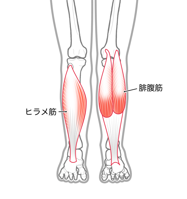 下腿三頭筋とは腓腹筋(内側頭・外側頭)、ヒラメ筋の総称です。