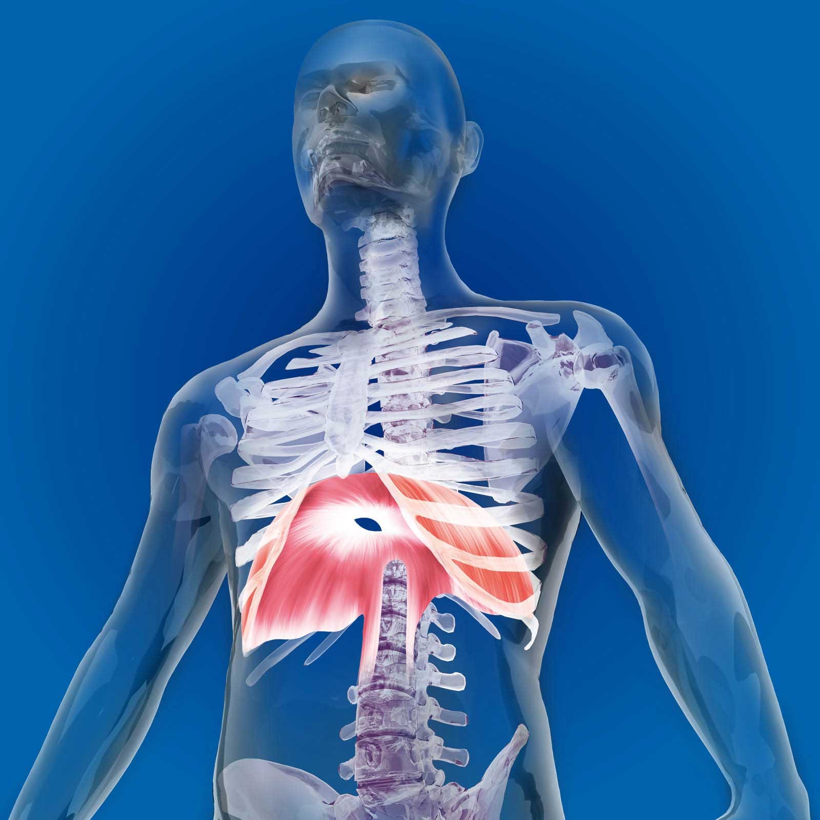 横隔膜とは肺と心臓の下に位置するドーム型の筋肉です。心臓から下にある血管はこの横隔膜を貫いています。