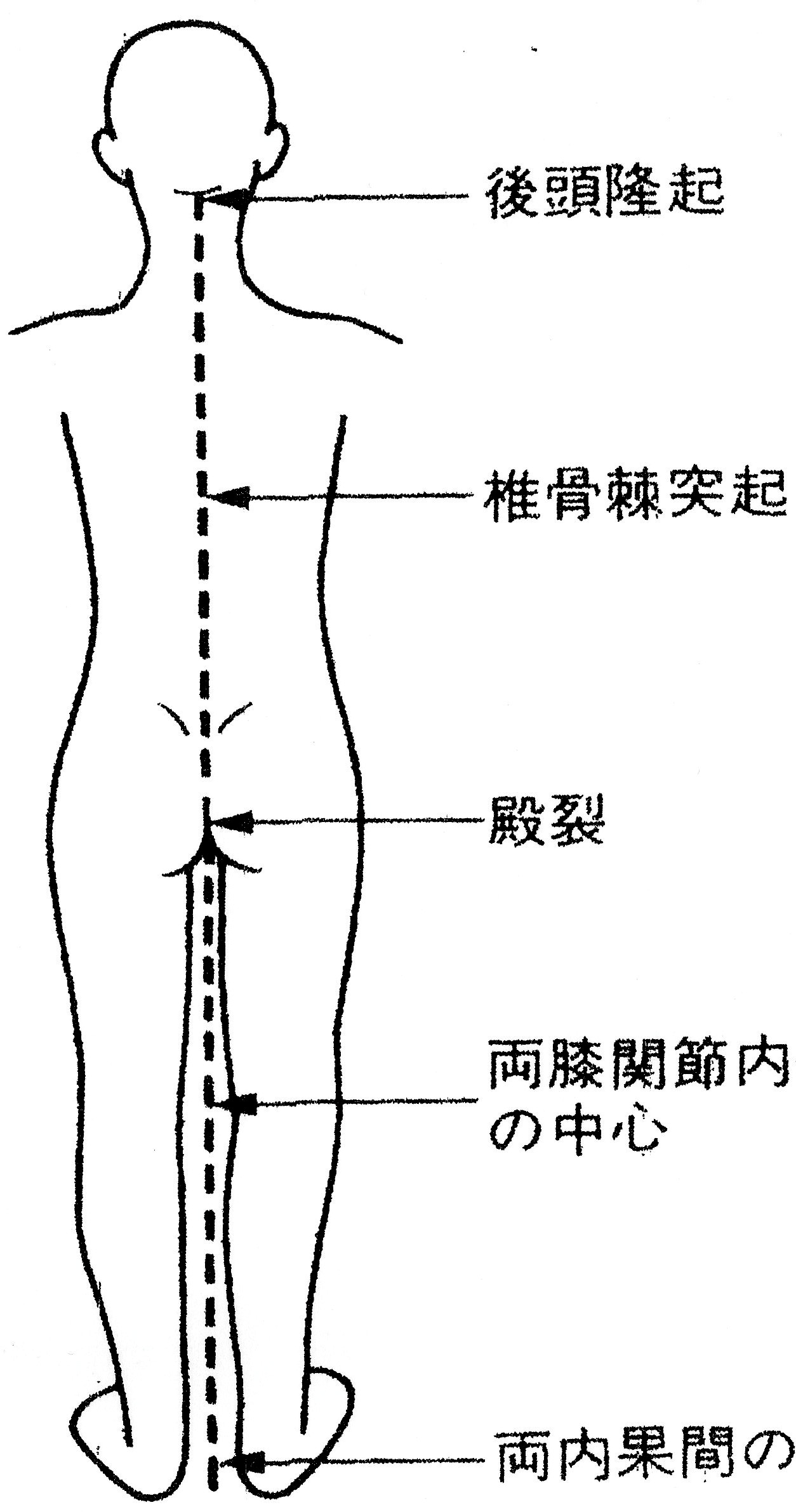 ④ 両膝関節内側の間の中点