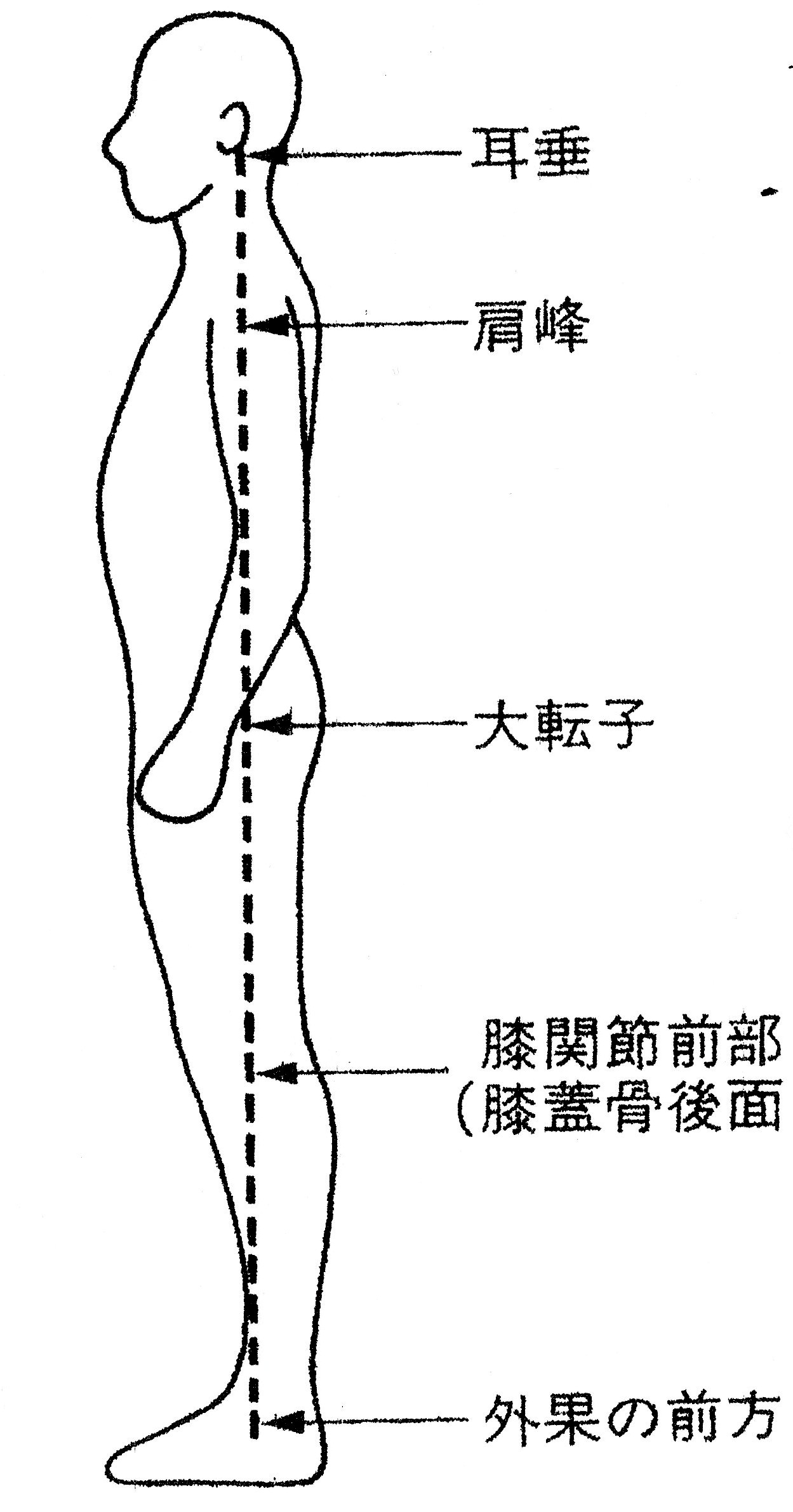 続いて、矢状面(側方)から見た姿勢のランドマーク。