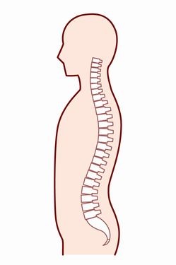 頚椎部では前側に突出(前弯)、胸椎部では後ろに突出(後弯)、腰椎部では前側に湾曲し全体を通してS字カーブを描いています。
