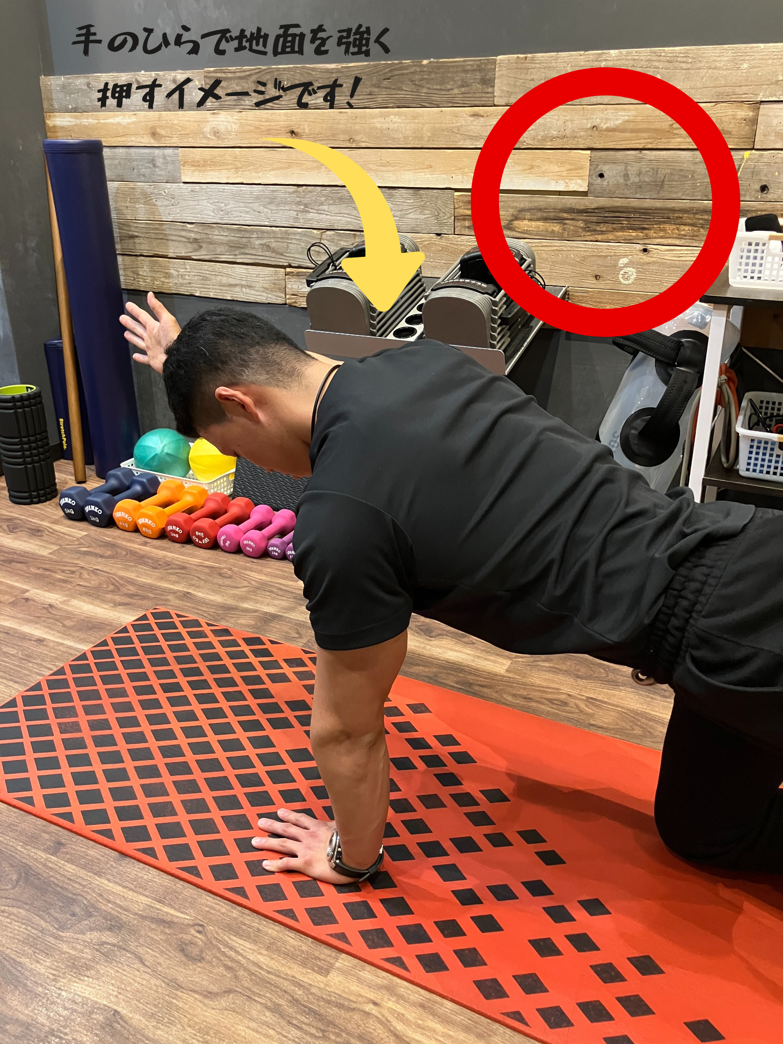 ・上記写真のように、スタートポジションで腰が反りすぎないように気をつけましょう!!