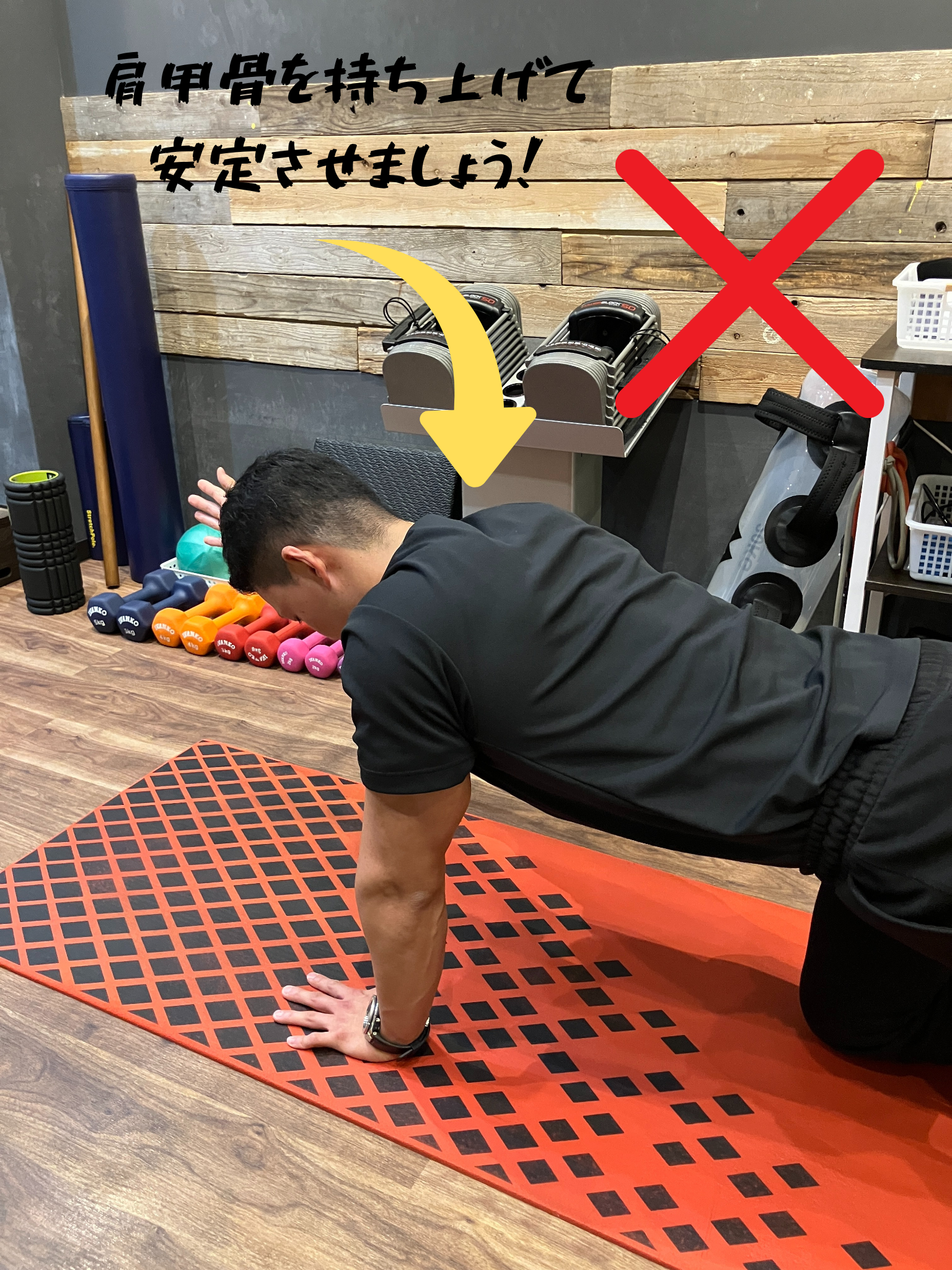 体幹部だけでなく、肩甲骨や股関節の安定性が取れないと行えない種目になっております。