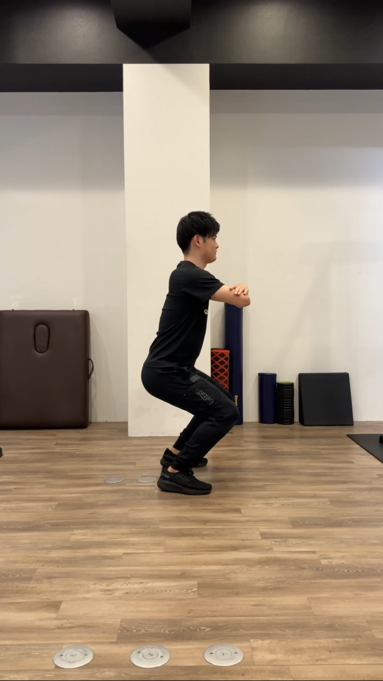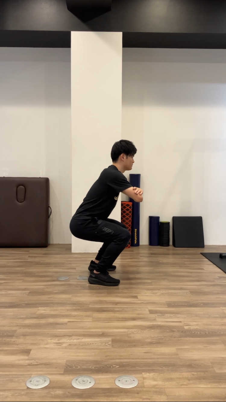 (難しい方は少し離れたところからイスに座る動作をしてみてください!!)