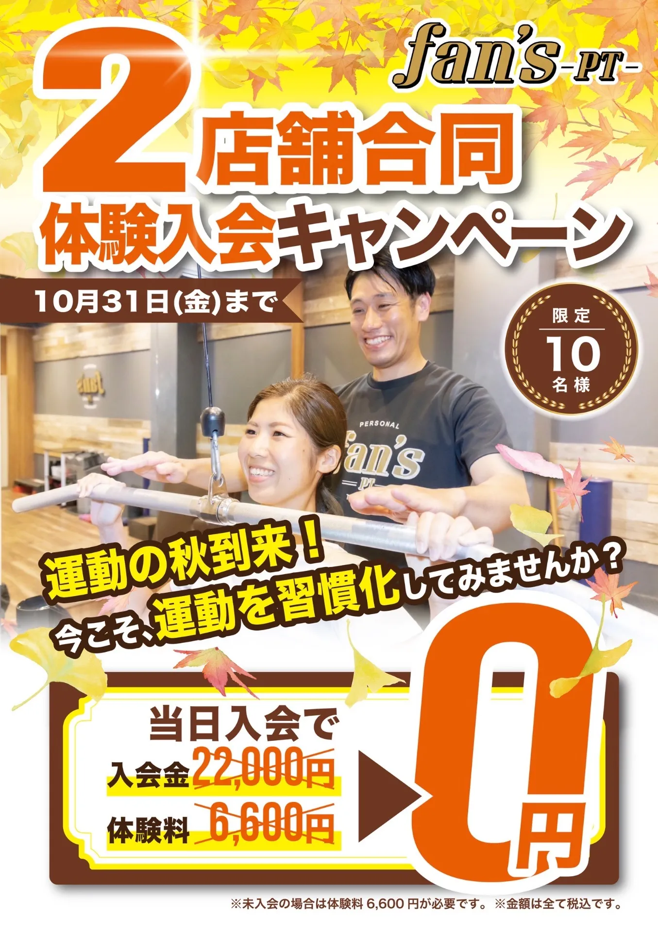 運動の秋にfan's-PT-では10月限定で体験入会キャンペーンを実施します!!