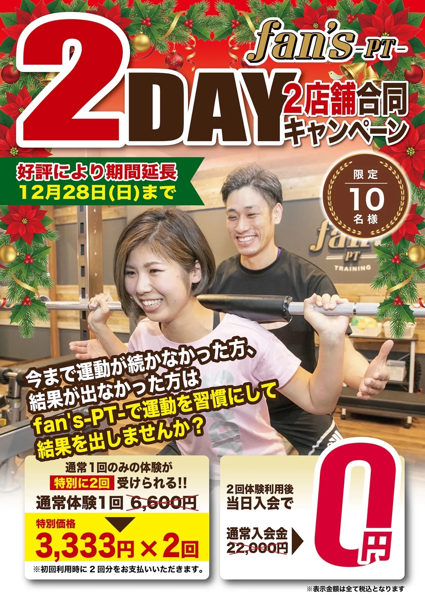 12月月末まで延長しました2DAY体験トレーニングキャンペーンを現在実施しています!